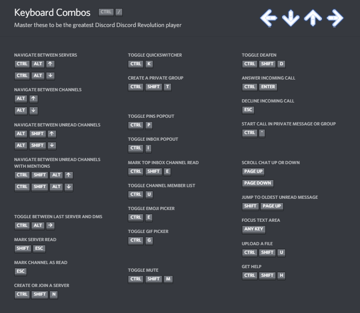 Discord har selv et lille cheat sheet til hotkeys indbygget, som kan kaldes frem med enten CTRL+/ eller CTRL+'